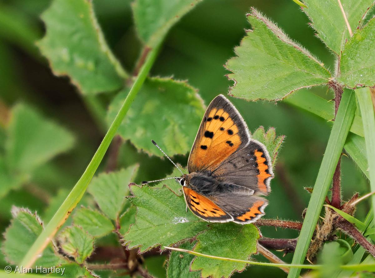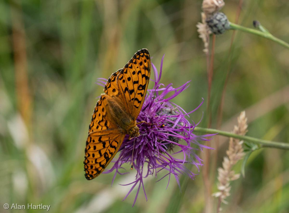 The weather was overcast early on, becoming hot sunshine later. It is an exposed site and there was a very strong and gusty wind affecting the upper parts of the Reserve.